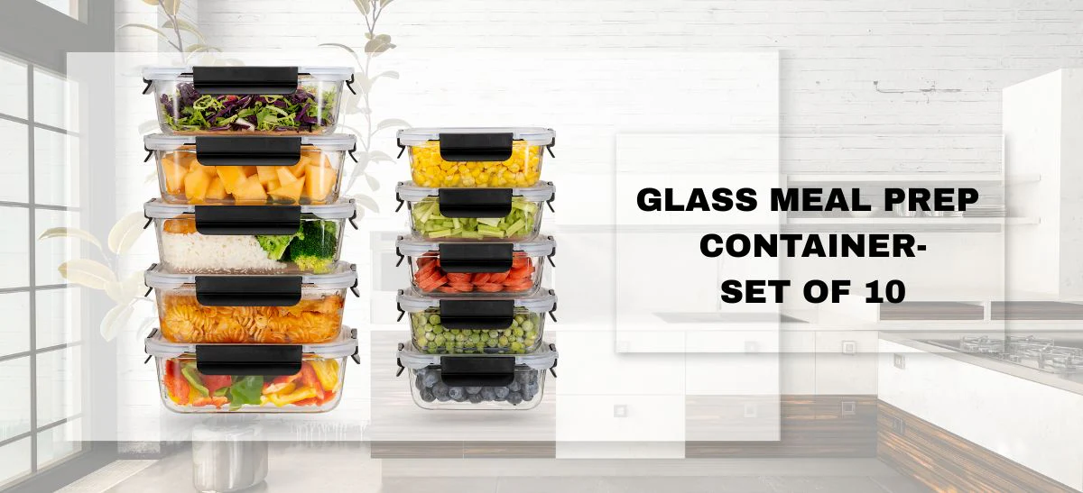 The Houszy pack of 10 glass meal prep container set is a comprehensive solution to your kitchen needs. This 20-piece collection comprises 10 robust glass containers paired with 10 BPA-Free smart-lock lids, ensuring both durability and freshness preservation for your food items.